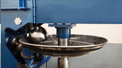 They are manufacture from a flat disc made of various types of steel. The dishing process presses the disc into various shapes such as torispherical, semi-ellipsoidal, hemisphere and cylindrical tank style which are welded onto the ends of a pressure vessel. The process involve dishing and spinning using hydraulic dishing press and flanging machine completes the dished end by spinning the required knuckle and the flange. The flanging machine allows the end to be welded to the tank body.